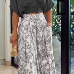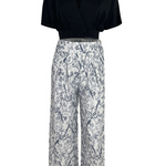 - Pantalones de pierna ancha : corte fluido con un elegante acabado estampado.
