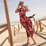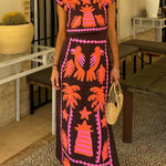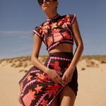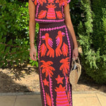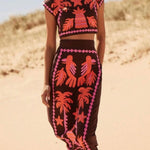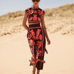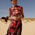 Este atrevido conjunto de dos piezas para mujer incluye un top corto ajustado y una falda midi de cintura alta a juego con vibrantes motivos bordados . El diseño estructurado y las costuras detalladas crean un look único y seguro , perfecto para ocasiones a la moda. Atrae todas las miradas con este conjunto artístico .