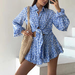 Este conjunto holgado de dos piezas para mujer incluye una camisa de mangas abullonadas con un moderno diseño de lazo frontal y pantalones cortos de cintura alta con volantes a juego. Ideal para un estilo sencillo, su silueta fluida le da un look relajado y elegante. Un conjunto ideal para salidas informales o para las vacaciones.