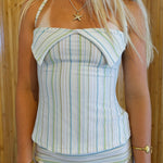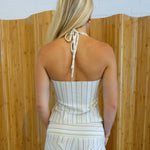 Este elegante conjunto de dos piezas a rayas para mujer incluye un top bandeau sin tirantes con escote estructurado y pantalones anchos a juego . Las rayas verticales alargan la silueta, mientras que el corte holgado ofrece comodidad con un toque moderno . Ideal para días informales , para relajarse o para un estilo sofisticado en tu tiempo libre.