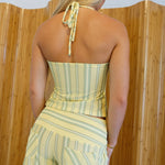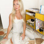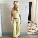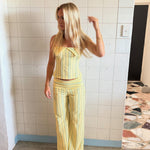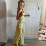 Conjunto de dos piezas de rayas sin tirantes para mujer con pantalones anchos