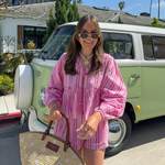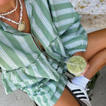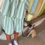 Manténgase fresco y con estilo con un conjunto ligero de dos piezas a rayas