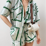 Este conjunto de verano estampado para mujer combina ligereza y comodidad con un estilo vibrante . Su tejido transpirable y antiarrugas te garantiza una sensación de frescura y comodidad en los días calurosos. Su corte sencillo y cómodo lo convierten en un conjunto versátil, ideal para cualquier ocasión. Ya sea para el día a día, para las vacaciones o para un fin de semana relajado, este conjunto ofrece estilo y comodidad.