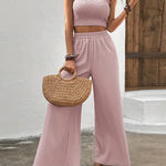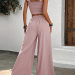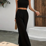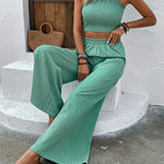 Conjunto de dos piezas de verano para mujer con top fruncido y pantalones anchos