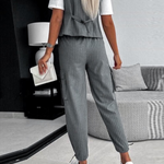 Mantén el estilo con este conjunto de dos piezas de chaleco y pantalón a rayas para mujer