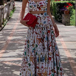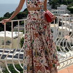 Este llamativo conjunto veraniego de dos piezas para mujer incluye un top corto ajustado y una falda larga y vaporosa . Diseñado con un vibrante estampado integral , es perfecto para vacaciones, eventos al aire libre o paseos por la playa. El conjunto combina comodidad y estilo para un estilo informal.