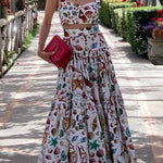 Conjunto de dos piezas de verano para mujer con top corto estampado y falda