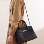 Este bolso bandolera estructurado para mujer combina un diseño clásico con una practicidad moderna. El asa superior y la correa desmontable ofrecen opciones versátiles para cualquier ocasión. Un cierre de broche dorado pulido le da un acabado refinado a su silueta atemporal.
