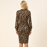 Este vestido largo con estampado de leopardo es la elección perfecta para un look atrevido y elegante. Con mangas largas, un escote femenino en V y una seductora abertura, ofrece un equilibrio ideal entre sofisticación y actitud.