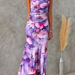 Adéntrate en la elegancia natural con este vestido maxi floral sin mangas de un solo hombro, diseñado para favorecer y dar movimiento. El corpiño fruncido realza tu figura con un delicado fruncido, mientras que el estampado floral aporta un toque romántico y sutil. Con un dobladillo con volantes en cascada, este vestido ofrece movimiento, encanto y comodidad durante todo el día, perfecto para ocasiones especiales o paseos soleados.