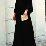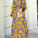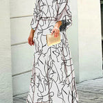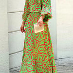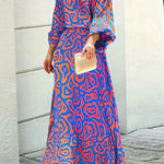 Vestido largo con estampado abstracto y mangas sueltas para mujer, vibrante y elegante.