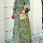 Este vestido largo para mujer combina a la perfección comodidad y estilo. Con un atrevido estampado abstracto en verde y rosa, presenta una silueta relajada y fluida , además de mangas largas. Su vibrante estampado te hará destacar, mientras que su corte relajado lo hace ideal tanto para salidas informales como para eventos semiformales.