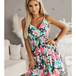 Vestido mini cruzado con tirantes finos y estampado floral para mujer con falda plisada en forma de A
