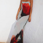 Vestido largo de fiesta con estampado abstracto de tulipanes para mujer