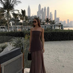 Este vestido maxi asimétrico para mujer combina elegancia y diseño moderno con su escote palabra de honor y su falda fluida de capas . La abertura alta le da un toque vibrante, haciéndolo perfecto para eventos nocturnos, galas o reuniones formales. Su silueta elegante y sus capas únicas crean un look sofisticado y sofisticado.