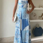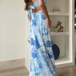 Captura la elegancia fresca con este vestido largo estampado azul