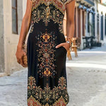 Vestido largo bohemio para mujer con mangas cortas y estampado ornamental