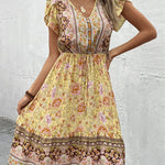 Vestido midi bohemio para mujer con estampado floral y botones en la parte delantera