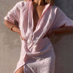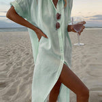 Este vestido camisero maxi abotonado para mujer combina comodidad y estilo con su corte holgado y abertura alta . Con cuello camisero clásico y botones en la parte delantera , es perfecto para días de playa o salidas informales. Su silueta fresca y diseño transpirable lo convierten en una opción ideal para eventos de verano o para relajarse junto al mar.