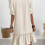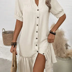 Disfrute de una comodidad elegante con el vestido midi abotonado para mujer con dobladillo con volantes para un estilo sin esfuerzo.