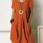 Este vestido casual con bolsillos para mujer combina a la perfección comodidad y estilo. Su corte holgado y sus vibrantes colores ofrecen un look fresco y vaporoso, ideal para días de verano o salidas informales. Con sus dos prácticos bolsillos laterales y mangas cortas, este vestido ofrece practicidad sin renunciar al estilo. Combínalo con tus accesorios favoritos para crear un look chic y desenfadado.