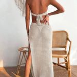 Vestido largo de bikini de crochet para mujer con abertura lateral