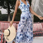 Traje de baño de una pieza con escote en V profundo y estampado floral para mujer
