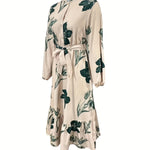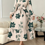 Elegante vestido largo floral para mujer con cinturón y mangas largas