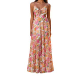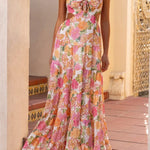 Vestido largo con aberturas florales para mujer, lazo frontal y tirantes finos
