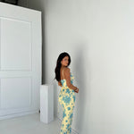 Este vestido maxi floral presenta un elegante escote desbocado y finos tirantes finos para un acabado delicado y moderno . Su corte ajustado y su largo realzan la silueta, mientras que el estampado floral le aporta un toque fresco y de temporada. Perfecto para bodas, vacaciones o cenas al atardecer.