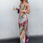 Vestido largo floral para mujer con cuello halter y corte relajado