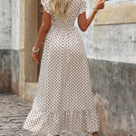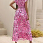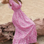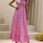 Vestido largo floral para mujer con cintura fruncida y mangas con volantes