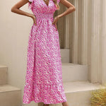 Este vestido maxi floral para mujer presenta un escote en V pronunciado , mangas con vuelo y cintura fruncida para una silueta elegante. La falda larga y vaporosa aporta elegancia , mientras que su diseño ligero te mantiene cómoda todo el día. Ideal para vacaciones, eventos de verano o paseos informales por el jardín.