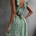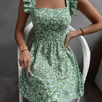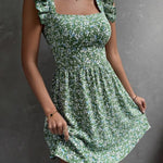 Vestido midi floral para mujer con mangas con volantes y cintura fruncida