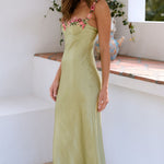 Vestido largo con tirantes florales y detalle bordado en el busto para mujer