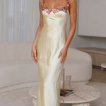 Brilla con gracia con este vestido largo con tirantes florales bordados