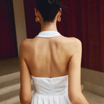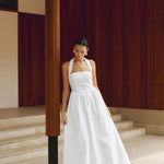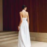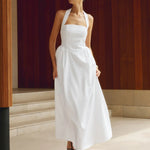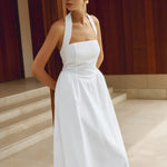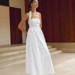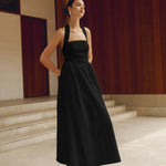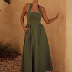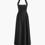 Elegante vestido largo fluido con cuello halter y corte A para mujer