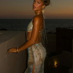Este atrevido vestido maxi halter presenta una cintura recortada que realza la figura y una atrevida abertura lateral alta que alarga las piernas. El diseño ajustable con lazo en la espalda garantiza un ajuste seguro y enmarca la espalda abierta . Perfecto para escapadas en climas cálidos o noches de resort.