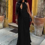 Vestido largo halter para mujer con abertura frontal y detalle fruncido