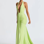 Vestido largo halter para mujer con escote en V profundo y cintura fruncida drapeada
