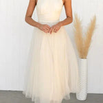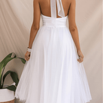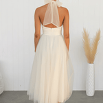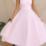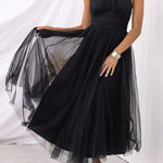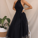 Vestido de tul con cuello halter para mujer, cintura ajustada y falda de largo medio