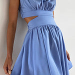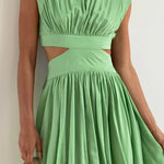 Esta llamativa prenda combina una silueta sofisticada con detalles modernos . Diseñada con un escote alto estructurado y cintura recortada , aporta un toque llamativo a un corte clásico . La falda fluida y el minivestido plisado la hacen perfecta para salidas en climas cálidos, desde paseos por la ciudad hasta eventos especiales.
