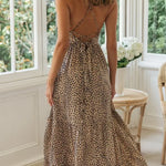 Vestido largo con estampado de leopardo para mujer, escote en V y tirantes finos