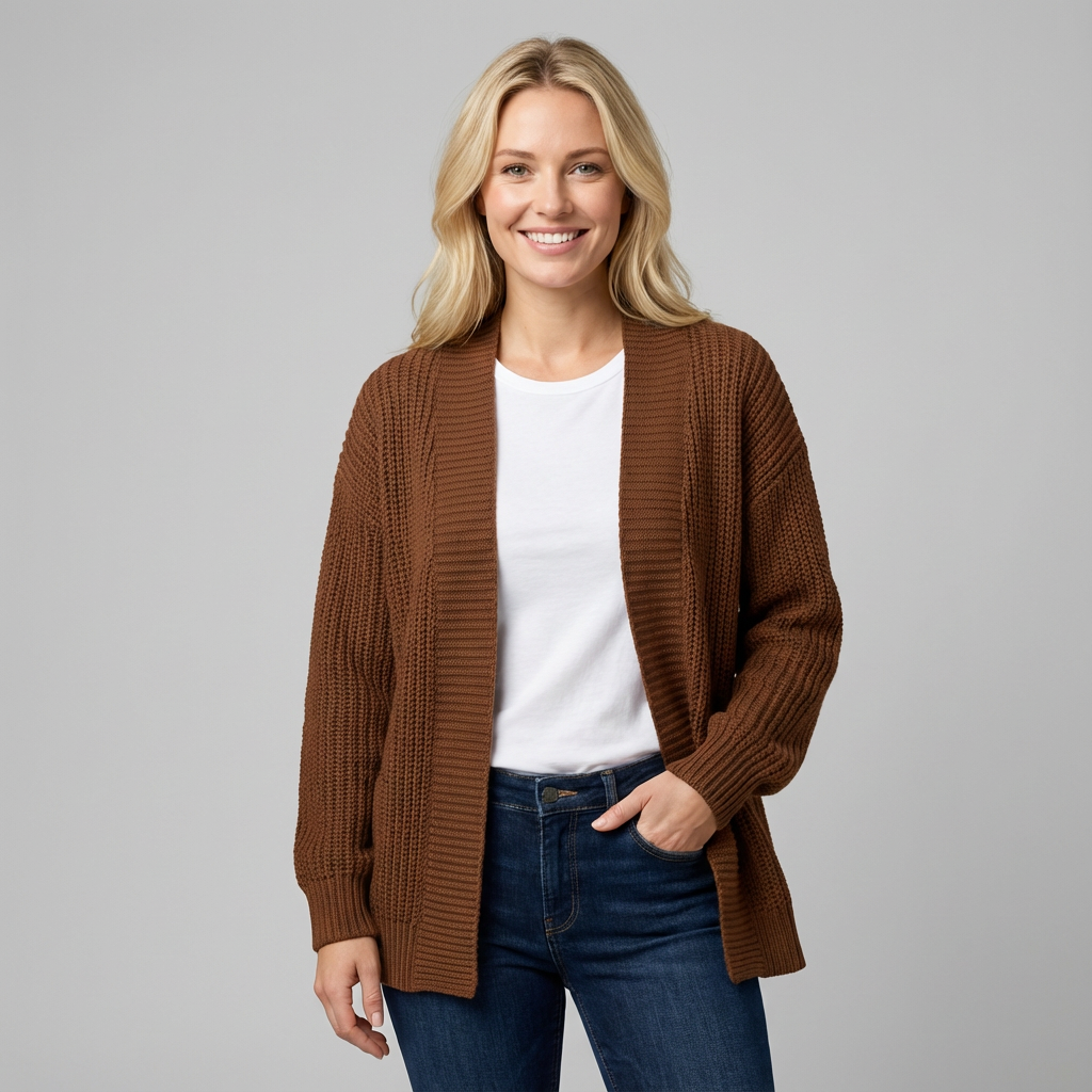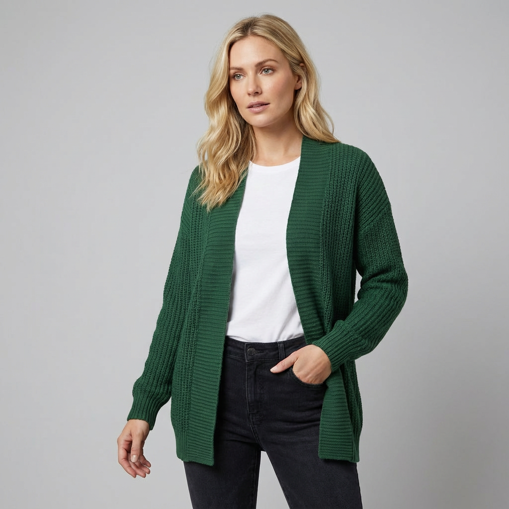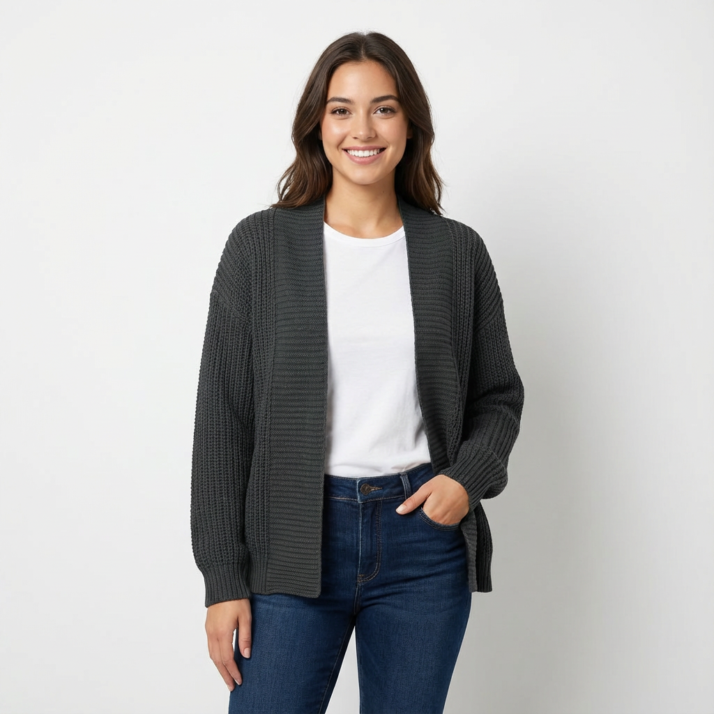 Comodidad sin esfuerzo con un cárdigan de punto abierto y relajado