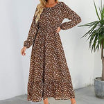Vestido largo de manga larga para mujer con estampado floral y cintura ceñida