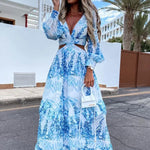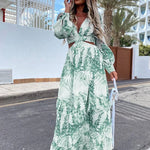 Este espectacular vestido largo para mujer presenta un profundo escote en V , mangas largas y una elegante cintura recortada que le da un toque moderno. Diseñado con una falda amplia y un estampado vibrante, es perfecto para escapadas al sol, fiestas en el jardín o cualquier salida con estilo. Su combinación de elegancia y vanguardia lo convierte en un imprescindible en tu armario.