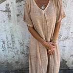 Vestido largo holgado para mujer con cuello en V y mangas cortas