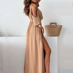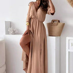 Vestido largo para mujer con abertura lateral y diseño frontal drapeado