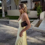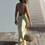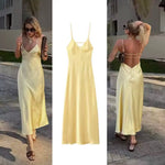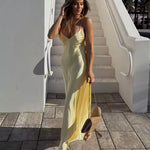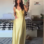 Este vestido largo de tirantes finos presenta un escote en V pronunciado y una silueta fluida que realza tu figura natural. Diseñado con un drapeado sutil y un largo hasta el suelo , ofrece una elegancia atemporal para cenas de verano, eventos o celebraciones al atardecer.