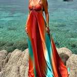 Vestido largo ombré para mujer con joya en la parte delantera y corte en la cintura